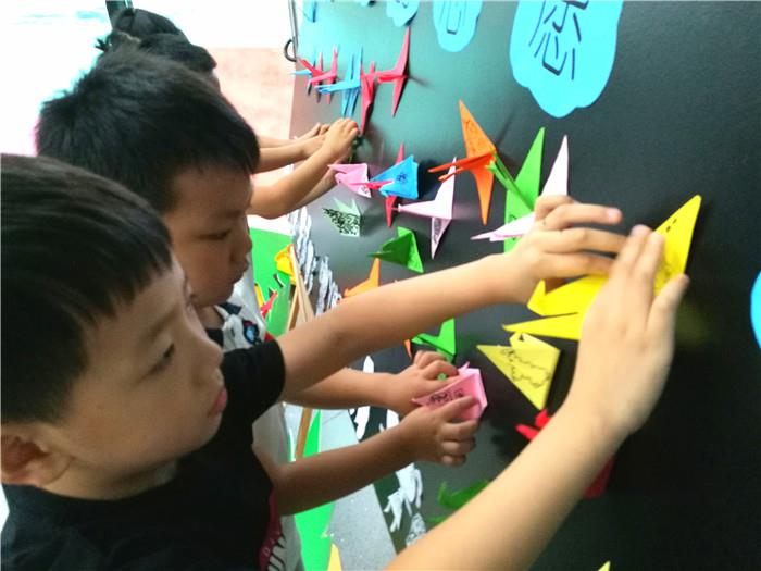 小班的小朋友到了一个新的环境难免有些陌生,老师们热情接待,一个拥抱、一个问候,让他们在听听、玩玩、看看、尝尝等有趣的活动中,舒缓了与家人分离的焦虑;中班的孩子在久别了多日之后,见到自己的同伴和老师,大家相聚在一起,兴致勃勃地分享着自己的暑期生活,孩子们在老师的带领下参观了变化一新的幼儿园,感受着幼儿园的美;大班小朋友则在 “千纸鹤”上用表征的形式表达自己的新学期愿望,放飞自己的心愿,同时作为哥哥姐姐的他们乐意、积极照顾新来园的弟弟妹妹,他们陪伴他们做游戏,帮他们穿衣服、鞋子……感受着成长的快乐。