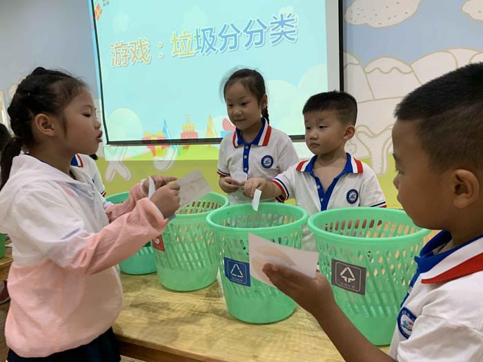 小班以“你笑起来真好看”为引,亲子共同制作笑脸娃娃、玩找朋友游戏,大家手拉手、抱一抱,表现来到新环境、遇见新伙伴、加入新家庭的喜悦;中班以“亲爱的、热爱的”为主题,用IPAD、照相机、手机、绘画等方式寻找并记录幼儿园、同伴的变化,体验升入中班后的变化与愉悦;大班开展了“垃圾慧分类”活动,通过垃圾分类PK赛、垃圾箱改造行动等宣传垃圾分类的发展理念,萌发垃圾分类的意识,知道“垃圾分类从我做起”,并能以积极行动带动周围的人,共同变废为宝,保护环境。