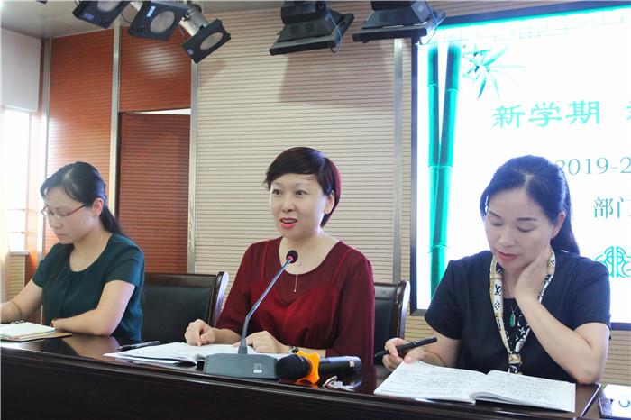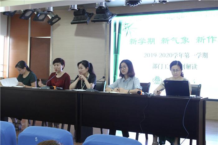 接着,陈淼副校长围绕教育常规落实、教学质量提高、学科特色融合、项目研究推进等方面解读了教导处工作计划。聚焦“深度学习·思维课堂”,深入推进学校省前瞻性项目“语文素养表现型教学的实践探索”研究,围绕“分享聚焦、立体研讨、迁移运用、整理归纳”四个模块,各学科进行微课型研究和理论研究,以提高教育教学质量为核心,促进师生发展为目标。
