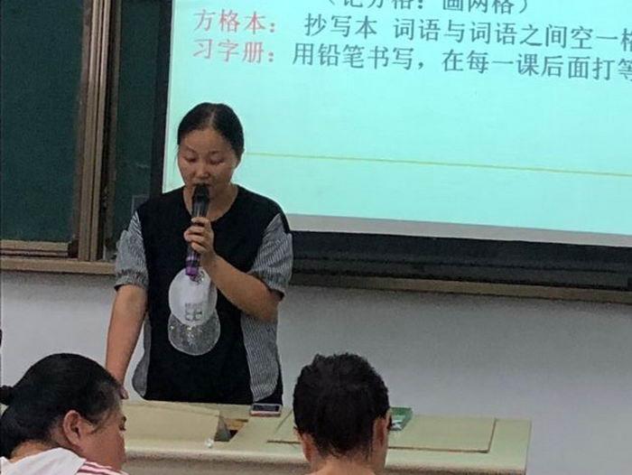 接着,李校长给老师们提出了一些中肯的意见。她提醒老师们在课堂上一定要严格遵守规范,并要做个有心人,要勤于学习,多和同伴互相交流学习,取长补短,多从网络上学习,努力钻研教材。今年使用的是统编版教材,老师们要有一股钻研精神,要理解教材,吃透教材,要把握好文章中的语文要素,促使自己提高解读新教材的能力。