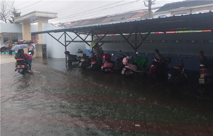 9月5日下午3:30,受超强台风“玲玲”的外围影响,南长街教育集团无锡市双河新村小学上空乌云密布,雷声轰鸣,3:45一场瓢泼大雨从天而降,到4:00短短15分钟的时间,地势低洼的校园已经容积10—20厘米高度的水量,而此时暴雨越下越大一点也没停歇的迹象。此刻正是学校放学的时间,校门口聚集接送孩子的家长、排队放学的班主任一时不知所措,一些懵懂好奇没有被家长接走的孩子 “兴奋”地跑到水里踩水玩……