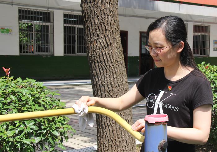 中午,党员教师安排好学生的午间活动,自己不休息又拿起抹布,操起笤帚服务学校,进行“责任区”认领,为校园美化出力。大家干劲十足,切实发挥一个党员一面旗、一个支部一个堡垒的作用,团结协作,脏活累活抢着干,个个都沉浸在劳动的快乐中。他们有的擦橱窗,不放过任何一处死角;有的手里攥着抹布,抹了健身栏杆,眼睛又盯上了餐厅的门;有的党员教师默默不语,扫跑道,扫校门,扫包干区;更有的党员教师踮起脚尖,小心翼翼地擦拭沾在灭火器上的点点污物……