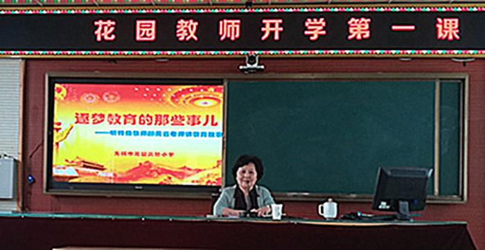 近日,无锡市花园实验小学的老师们齐聚报告厅,聆听由江苏省首批特级教师顾美云老师带来的“开学第一课”——《逐梦教育的那些事儿》。<!--?xml:namespace prefix = o ns = "urn:schemas-microsoft-com:office:office" /-->