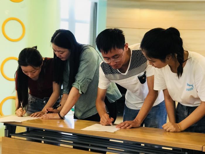 全体教师签订廉洁从教承诺书,郑重承诺:不忘初心、牢记使命。不忘热爱孩子,一切为了孩子的初心,牢记为民服务宗旨,教育报国,立德树人的使命,换位思考,做好孩子的保教工作,让家长放心。接着,组织新教师入职引领,园长向新教师交接学习手册;新老教师签订蓝青结对,做好新教师的“传帮带”。 在最后的庆祝活动中,教师们结合今年教师节的主题“庆祝新中国七十华诞,弘扬新时代尊师风尚”,以朗诵为主,各显身手:中班年级组的诗歌朗诵《祖国——我心中的一首歌》,它讲述了教师的心声;大班年级组朗诵的《我的祖国》,打开记忆的长卷,走进岁月的故土;小班男老师朗诵的《中国,我的中国》,慷慨激昂,为祖国的成就骄傲;年轻老师们也当仁不让,或悠扬、或高亢、或婉转,流露出一首首赞歌,吟诵爱国情怀,抒发心中骄傲,体现教师风采。