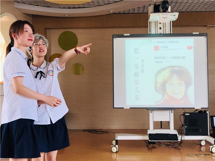 9月10日下午,通幼工会组织开展了“倾情育桃李真情颂祖国”为主题的庆祝活动。庆祝活动在周岚园长的深情致辞中拉开序幕,在这个特殊的节日里通幼举行了简单又隆重的“青蓝工程”师徒结对活动,场面庄重而温馨。紧接着老师们以年级组为单位,围绕学习强国中的学习内容进行了展示。讲教育故事,引领全园教工追求崇高师德;赏中华美景,感受祖国河山的壮丽之美;唱祖国赞歌,感受别样的温暖和振奋。整个活动既严肃,又不失欢悦的氛围,老师们乐在其中。