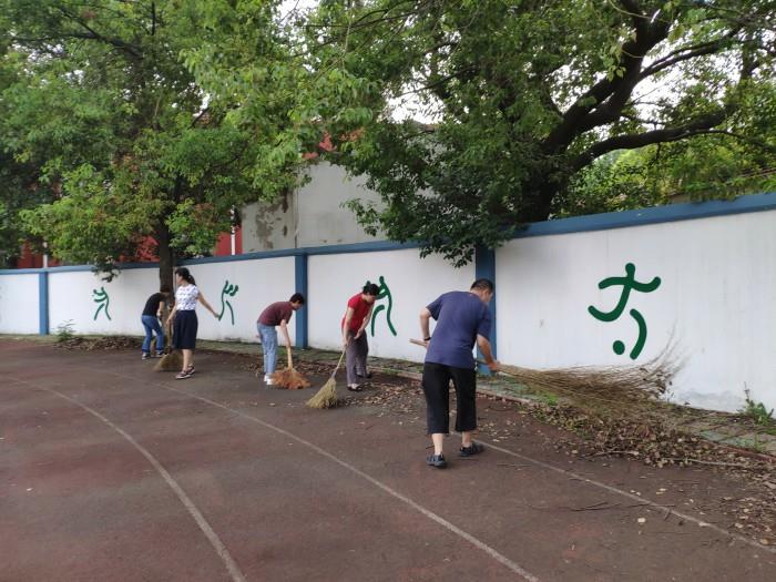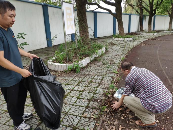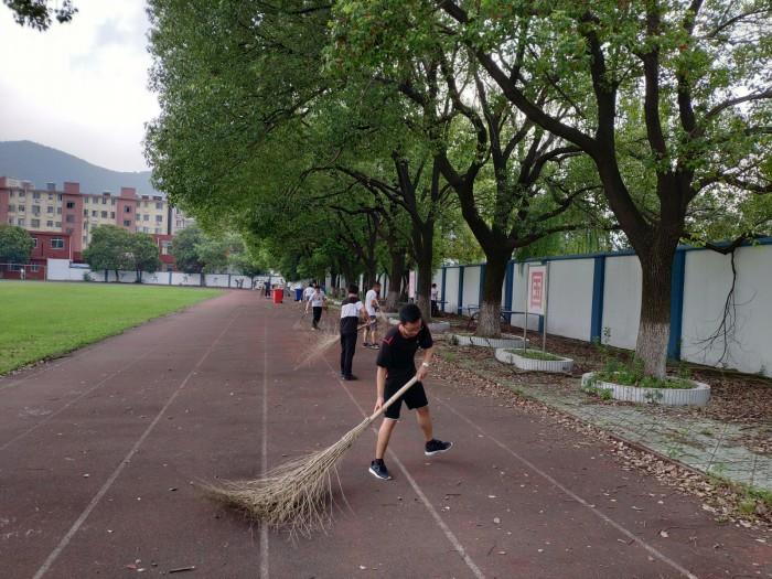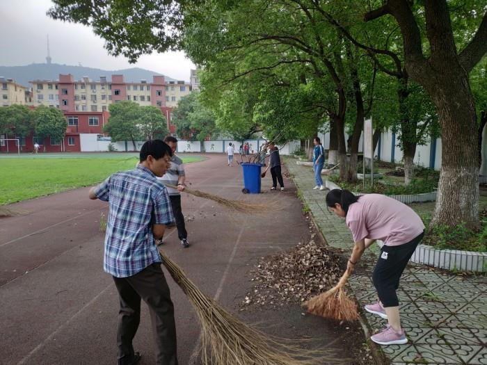 9月11日,无锡市山北中学党支部组织志愿者开展了扫落叶活动,惠峰校区全体党团员参加了本次活动。