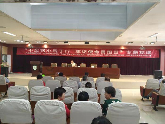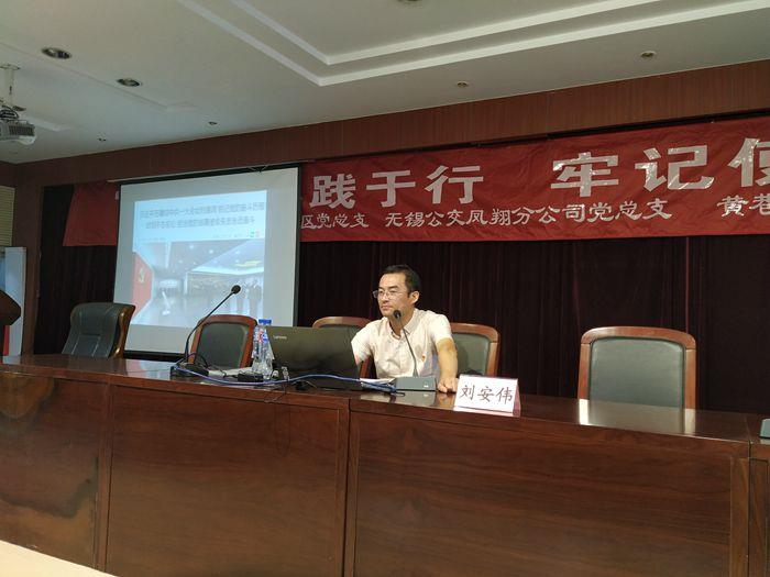 9月9日,凤翔教育集团党委联合杨木桥社区党总支、无锡公交(集团)凤翔分公司党总支、黄巷派出所党支部、无锡电信梁溪北党支部、梁溪区市场监管局黄巷分局党支部开展党建联盟活动,邀请了无锡市委党校学员处刘安伟处长来校进行了“不忘初心践于行 牢记使命勇担当”专题党课,这也是凤翔教育集团党委开展“不忘初心、牢记使命”主题教育的重要环节。<!--?xml:namespace prefix = o ns = "urn:schemas-microsoft-com:office:office" /-->