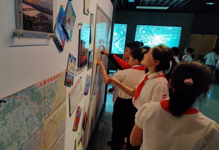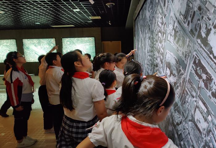 在档案馆赵主任的讲解引领下,孩子们经历了旧时代的无锡,领略了改革开放中的无锡,感受了大潮崛起下的无锡。讲解员结合馆内各个时期珍贵的历史手绘图片、航拍照片等资料,向孩子们们介绍无锡历史及经济社会发展情况。一幅幅图片、一帧帧画面,生动形象地展示了无锡的历史变化,吸引少先队员们驻足观看,引发大家共鸣和思考。