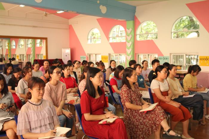 为提升教师职业幸福感,感受职业魅力,9月20日中午,太湖实验幼儿园工会联合侨谊幼儿园金科园工会,邀请了无锡市劳模、幼儿园特级教师秦璞给全体教师作劳模宣讲。