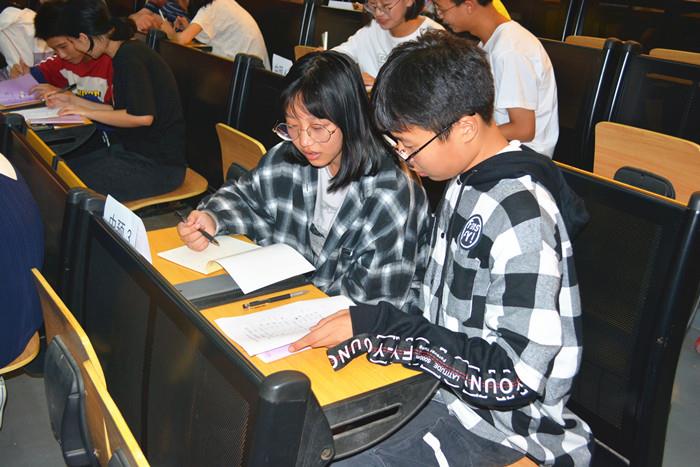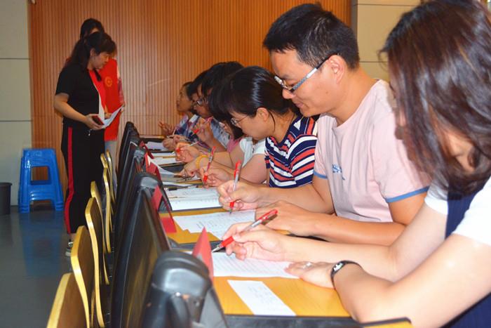 9月19日中午,在该校阶梯教室,塘南中学普通话大赛拉开帷幕,全校21个班级共42人参赛,比赛共设三个项目,分别是:你写我拼、你拼我写、唇枪舌战。前两项考查了同学们对平时生活中易错字字音和字形的掌握情况,最后一项则是挑战绕口令,展示普通话朗诵水平。各年级共八位语文老师担任该次大赛评委,现场打分,一决胜负。
