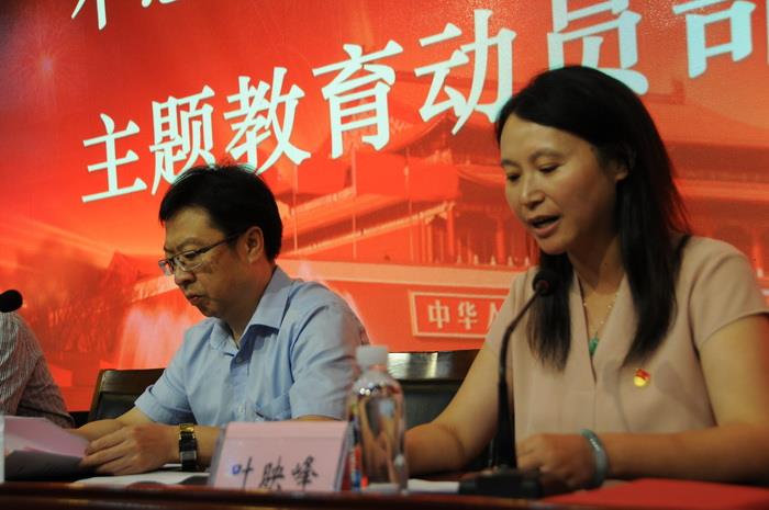 区教育系统“不忘初心、牢记使命”主题教育巡回指导组第二组组长、区委教育工委副书记、教育局局长潘鹰出席会议并作重要讲话,集团党委书记、总校长叶映峰作动员部署讲话,集团党委委员、副总校长叶皓主持会议。