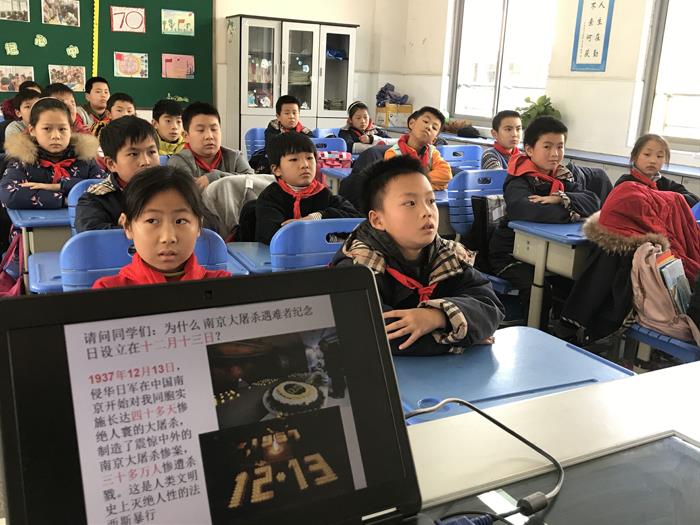 为进一步激发少先队员们的爱国主义情怀,引导他们铭记历史,勿忘国耻,奋发图强,12月13日,南长街小学四年级开展国家公祭日主题队会,表达对南京大屠杀死难者的哀思。