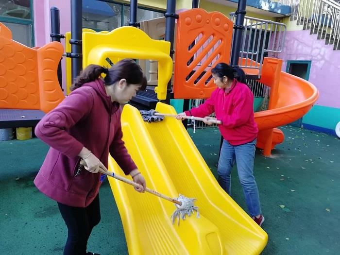 通过大扫除活动,有效阻断了各种病菌滋生机会,为幼儿的健康成长提供了保障,同时也体现了保育员们积极良好的精神风貌和团结协作的精神。经过近两个小时的“奋战”,幼儿园焕然一新,呈现出整洁亮丽、活泼清新的新气象。活动后,阿姨们纷纷表示虽然很辛苦,但是看到劳动成果很有成就感。