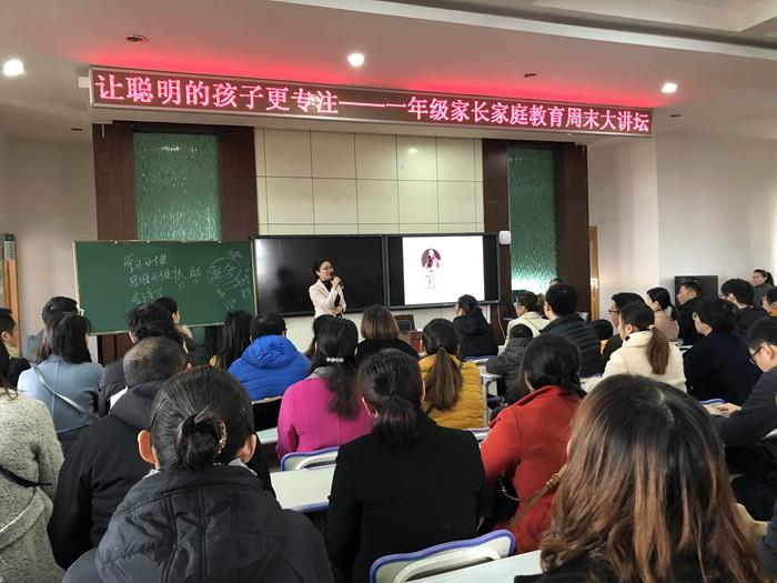 近日,无锡市扬名中心小学举办了一年级家庭教育周末大讲坛活动。邀请青少年成长心理干预专家刘志云老师给一年级的家长们带来了一场主题为“让聪明的孩子更专注”的讲座。刘老师从坚持正向引导培养好习惯和构建科学和谐的家庭结构两方面来阐述了专注力的培养。这是一年级家长第一次参加学校家庭教育周末大讲坛活动,现场互动积极,家长反响热烈。