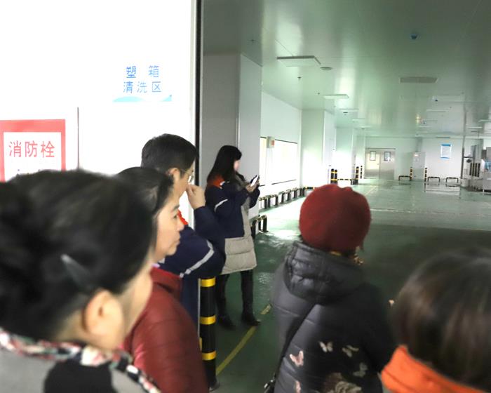 走进大楼,接待学校的是周忠总经理,一路跟着周总,代表们先后参观了“食品安全检测室”“分拣室”“塑箱清洗室”“储藏室”等专用室,对食材配送公司的整体运营流程有了一个直观的了解。参观者看着那些准备好的明天学生们要吃的蔬菜忍不住去摸一摸、闻一闻、看一看,又一次见证了食材的品质和新鲜度。