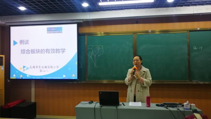 接着,两位老师就本节课执教的感悟向观课老师们进行了深入的阐述。随后,张心一老师以《例谈小学英语综合版块的教学》为题,通过课堂的实例分析、理论的解读再一次剖析了英语教学设计中教师需要关注的关键点。张老师指出,教学设计要以培养学生英语核心素养为出发点,要从教学目标的确立、学习内容的整合、教学策略的运用等方面着手进行课堂教学设计。真正实现学生英语语用能力的提升。