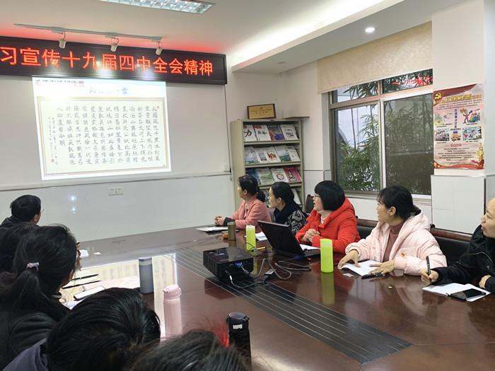 孙宣嵘同志在总结发言中强调:学习宣传贯彻十九届四中全会精神,是当前和今后一个时期的重要政治任务。她希望全体党员进一步提高政治站位,增强政治自觉,通过各种方式全面、准确、深入地学习和了解十九届四中全会精神,充分认识全会精神的重大意义,深刻领会全会精神的丰富内涵与核心要义,把思想和行动统一到以习近平同志为核心的党中央重大决策部署上来,立足自身职责,扎实做好各项工作。
