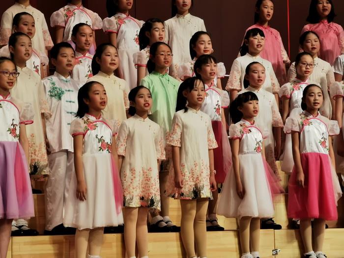 学校少儿声乐课程开发将近七年,七年里在学校教科室的引领下,逐年开发少儿声乐课程校本教材,组建各年级榴花红合唱社团,本学期在此基础上组建了两支合唱演出团,让孩子们有机会学唱了更多的中外音乐作品和经典古诗,实现跨学科多元整合。