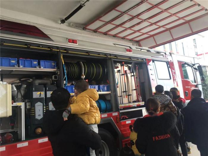 首先,消防员叔叔带领小朋友和家长近距离地观察消防车,详细地向大家讲解了各辆车的名称、功能、操作事项及车内各类救援器材和在灭火救援任务中的用途。一群小萌娃还亲自上车观察体验,他们对车上的一切都充满了好奇,消防员用浅显易懂的语言向大家介绍了车上的设施设备及用处。