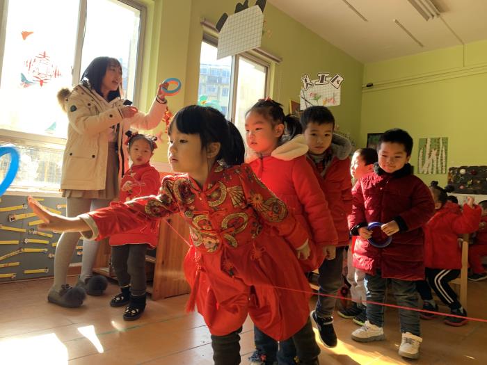 大班级部的孩子们欢聚一堂,抢红包、剪窗花、夹汤圆、套幸福、画福、吃年货、画年画等游戏让孩子们深切感受到“新年”的味道;中班级部孩子们一起讨论了过新年的庆祝方式,他们身穿红衣,在舞台上唱唱跳跳,多才多艺的太湖宝贝们,要把自己的欢乐与大家分享。随后的抢椅子、年年乐、新年套圈等喜庆的游戏充满了挑战和欢乐,他们在结伴游戏中感受到互助成长的快乐;小班级部的孩子们则围坐一起唱起了新年歌,通过挑战赛(穿衣服、穿裤子、穿鞋子)让宝贝们你追我赶,深刻体会到成长的快乐。