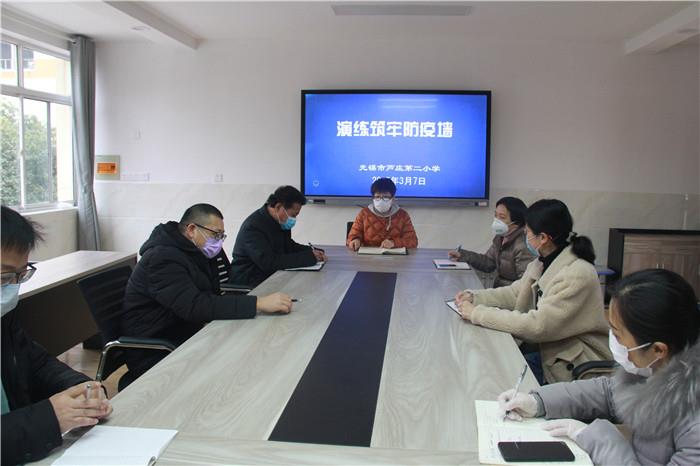 为扎实有效做好学生返校开学工作,3月7日,无锡市芦庄第二小学防控领导小组就学生在校的各个环节,进行情景推演、实战演练。