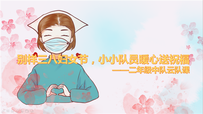 3月6日,少先队员们集结在腾讯课堂,在中队辅导员的组织下,展开了一场题为“别样妇女节,暖心送祝福”的班队活动。在这美丽的三月,对身处抗“疫”一线的女性医护工作者,送上了真诚又暖心的祝福。