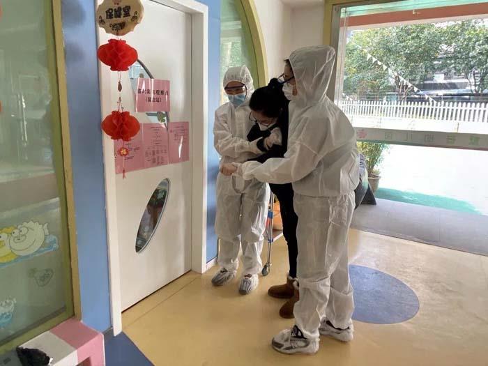 入园晨检是师幼安全第一道防线,任何来园人员一律晨检消毒,教师、家长集中来园需自觉保持安全距离排队等候检查与消毒。遇到突发情况,首先保健医生或保教人员发现孩子体温异常或其他呼吸道疾病症状立即上报园长。其次,班主任、保健医生穿上防护服送发热幼儿进入隔离室,保健医生陪伴发热孩子进入医学隔离室,安抚孩子紧张情绪。接着园长上报上级部门,副园长立即通知本班所有孩子家长立即接回孩子,等待诊断结果并与家长说明耐心等待诊断结果。最后保安着防护服开展全面消杀工作。