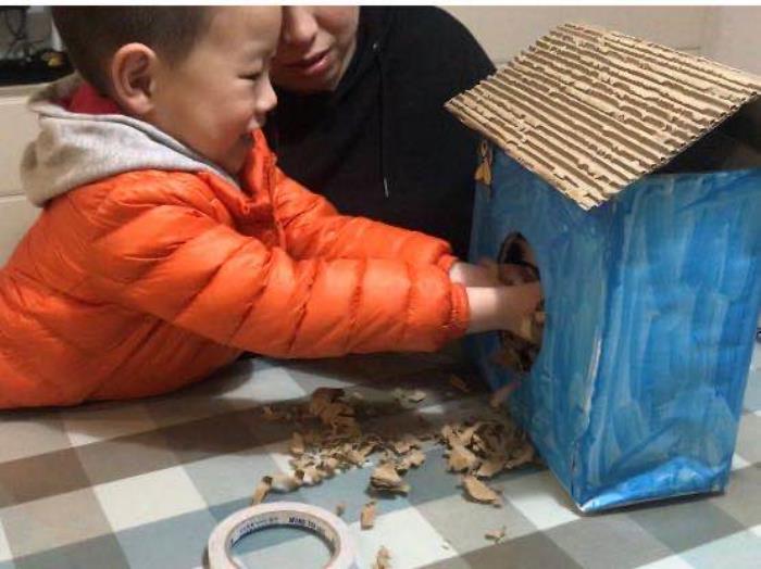 小班级部的小朋友在爸爸妈妈的指导下种起了蚕豆,松松土,种种子,种完种子浇浇水,每天观察植物宝宝的生长状态,开学后带去幼儿园跟同伴比一比;中班级部开启了“爱的鸟窝”大讨论,利用废旧材料给小鸟做个鸟窝,各种材料的鸟窝可爱又温馨,放在阳台上期待小鸟们飞进爱的小家,萌发了幼儿保护鸟类的爱心;大班级部则策划起了线上“爱的倡议”:每一棵树都那么努力,默默无闻地在为我们付出,那我们可以做点什么呢?植树造林、垃圾分类、废物回收利用、绿色出行、节约用水......孩子们用手中的画笔画出了绿色环保倡议,还这个宅在家的“3.12”绿色生机,更激发了孩子们关爱大自然的决心。