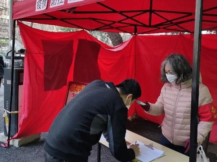 2月23日,无锡陆续迎来一批返程客流,“逐个测温、逐人筛查”已然成为小区门口站岗值班的重中之重。返程客流的发热病人尤其危险,万一出现,还要继续寻找相关病例密切接触者。于是顾老师不顾被传染的危险,不顾身体疲惫,道口登记、居委登记,象一头不知疲倦的老黄牛,来回奔波于居委会与居民之间,查登“锡康码”,消毒固防线。