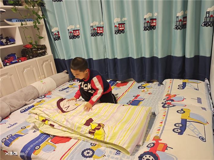 在老师们的引导和家长们的指导下,孩子们学会了自己叠衣裤和袜子,学会了自己收拾玩具和图书,学会了整理床铺和打扫房间。