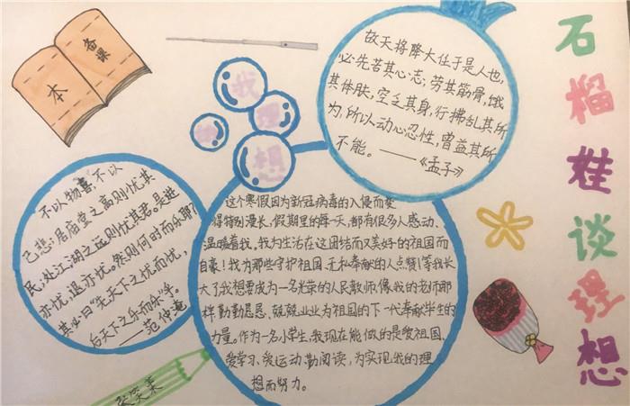 在这一场特殊的战役里,队员们看到了普通人的大爱,更读懂了逆行者们心中的理想和信仰。三(6)中队的石榴娃们开展了“石榴娃,谈理想”的线上主题班会。“天下兴亡,匹夫有责”。我们每个人的前途命运,都与国家和民族的前途命运紧密相连。到底要崇拜什么样的人,应该树立怎样的理想,同学们纷纷用自己的方式,诠释了思考。