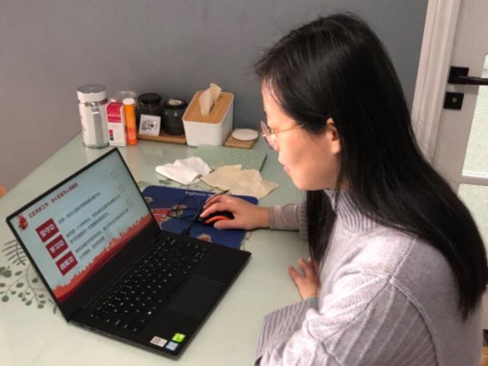 会议开始,党支部书记朱雷作了冬训工作阶段小结,随后结合疫情防控情况,为党员们带来生动的线上党课——我是党员,我奉献。围绕“践行群众路线——乐于奉献”、“立足本职工作——全心服务”和“面对困难挑战——挺身而出”三个方面结合PPT开展语音讲评,明确了各位党员对无私奉献的意识,并与大家畅谈了作为党员,在本次疫情期间该如何发挥榜样模范作用。“在线云党课”结束后,党员们又进行了“在线云讨论”。留言互动了对“奉献”的理解与看法,并及时在党课学习的评价中,发布了学习过后的体会和感悟。