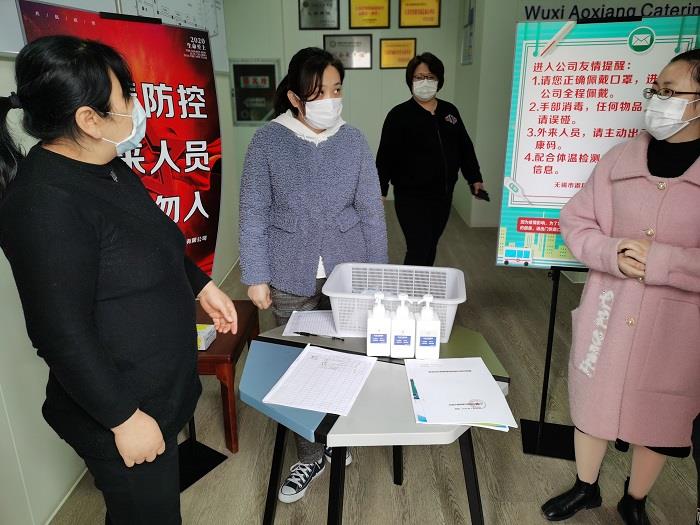 在快餐公司,塔中膳委会对快餐公司工作人员健康证、供应商索证资料、离锡工作人员回锡后情况资料、快餐公司防控工作预案材料、复工前卫生消杀工作等情况进行检查,明确快餐公司疫情防控工作要按要求实施,督促快餐公司确定一周菜单。