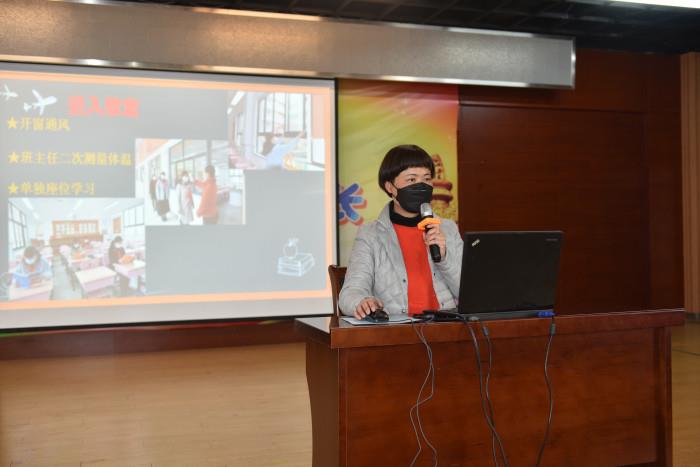 培训分三个内容进行。首先,学校党支部书记陈晓玲代表学校进行发言。陈书记肯定了班主任老师前期在落实疫情防控措施和“线上教育”等方面做出的巨大努力和极大成效,对班主任耐心细致的工作精神和对学生浓厚的关爱之情表示感谢!接着,陈书记介绍了当前疫情防控面临的新情况,要求班主任要加强责任落实,工作重心前移,未雨绸缪,全面抓好复学准备工作。学校要求努力营造积极的班级心理环境,耐心疏导化解学生的心理困惑,认真落实班级防疫日常管理举措,继续做好家校共育的持续推进。随后,德育处主任周永华从上下学、测温、就餐、课间活动、消杀等方面进行了疫情防控期间班主任一日常规工作培训,详细解读了《校园防疫指引》内容。最后,大队辅导员邹柯布置了抗击疫情主题宣传工作,要求各中队辅导员深入挖掘抗疫素材,为学生上好以“认识疫情、敬畏生命、做好防护”为主题的抗疫人生大课,引导学生珍爱生命、懂得感恩。