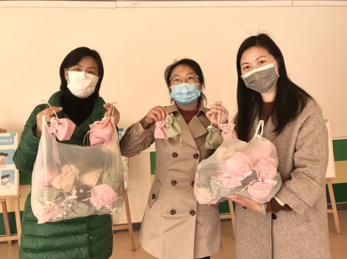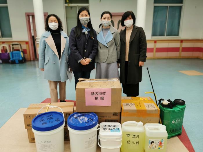 4月1日下午,扬名街道为幼儿园送来了口罩、免洗洗手液、消毒水、泡腾片、84消毒液等物资,并表示希望通过捐赠防疫物资为幼儿园疫情防控工作贡献一份力量。4月2日上午,芦庄园大一班朱雨菡妈妈送来了500个中药防疫香囊,挂在幼儿园教室、午睡房或随身携带都具有挥发性,有效抑制病毒和微生物入侵。家长表示,香囊的赠送就是想为学校、为社会做点实事,为学校增添一份安全保障。朱雷园长亲手接过了这两份沉甸甸的“抗疫礼物”,并代表全体师幼向街道、家长表示由衷的感谢。