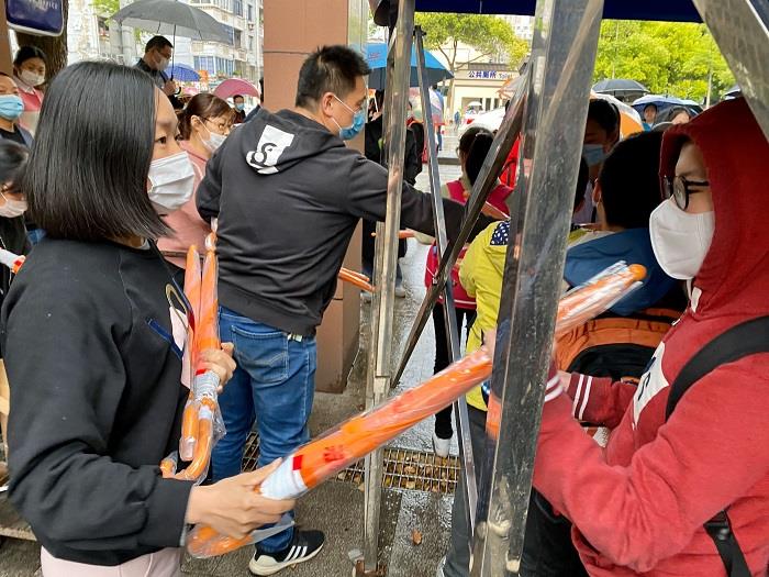 把把爱心伞,防疫更温暖,很多孩子撑开伞后原本紧锁的眉头也打开了,有的孩子主动说“我家很近,把伞给更需要的同学吧”。那时那刻,爱在传递、温暖在传递,师生们虽然隔着口罩,但一种力量已然在彼此交流的眼神中蓬勃生长。