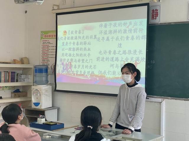 据悉,此次青春仪式上初二各班辅导员通过PPT展示图片、视频等方式带着学生共同回忆了进入中学以来校园学习生活的点滴。学生们则是通过才艺展示的方式演绎对青春的热切。初二(7)支部张奕辰的父母用一段视频给孩子送来了青春寄语,希望孩子在成长之路上能够经得起磨难和挫折,并通过自己的努力一步一个脚印地向自己的目标奋进。这段真挚的话语道出了许多家长的心声。
