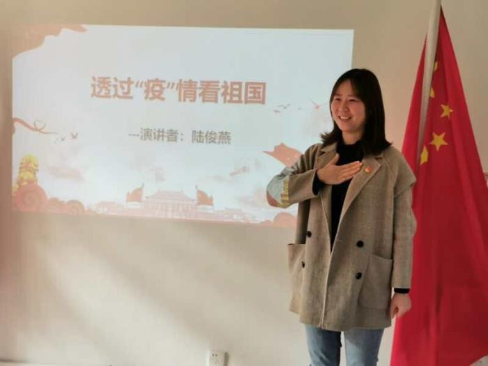 党支部书记朱雷从疫情中看到了强大的中国力量与中国智慧,并致敬每一位奋战在抗击疫情中的中国人民;祝玲英同志结合抗“疫”斗争中涌现出的先进事迹,表达了抗“疫”必胜的坚定信念;苏萍娟同志以自己在战“疫”中的行动,展现了党员的先锋力量。各党员的演讲让党员们深深感到:“正是我国的制度优势,使得我们在本次疫情中,将危机变为转机。