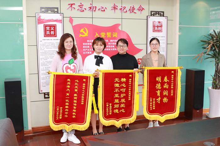 5月9日上午,逆风归来的白衣英雄——无锡市第二人民医院神经外科护士长蒋蕾,把一面面饱含浓浓谢意的锦旗送到六7班三位老师的手中。