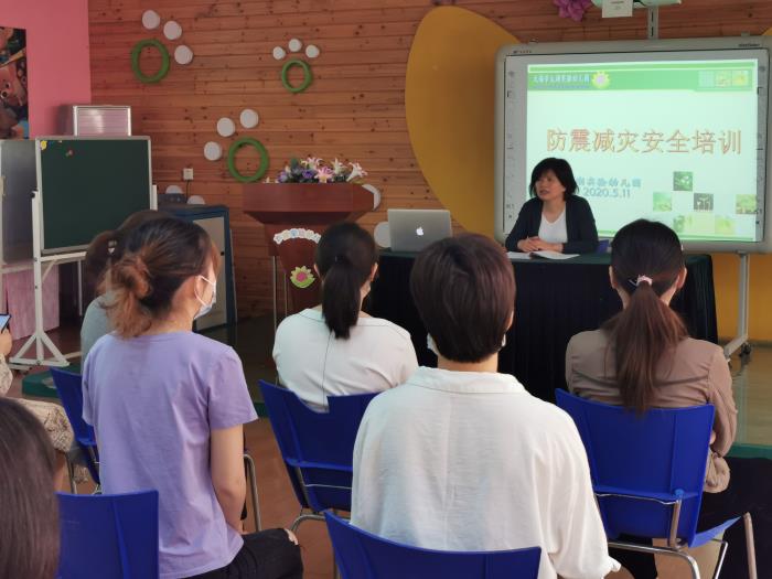 为提高全体师生的防震避险意识,防止和减少地震等意外事故造成的危害,太湖实幼安全小组提前召开了会议,制定了“ 防震减灾携手安全”逃生演练活动方案。组织协调组负责人许金花老师带领全体教职工进行了防震减灾安全培训会议。会上,明确了校园安全通道、安全出口的位置,以及幼儿下楼梯方法、顺序、路线。