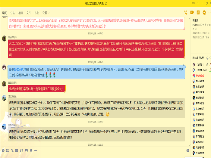 《幼儿园教育指导纲要》中指出:“家庭是幼儿园重要的合作伙伴。”家园携手共育是帮助孩子健康成长的桥梁。特殊时期,特别关爱,为进一步加强幼儿园与家长的密切联系、指导家长充分利用空余时间高质量陪伴孩子,也为了更好地了解宝贝们近期在家的身心状况,6月18日晚7点,无锡市商业幼儿园的老师们利用钉钉平台发起了一次“爱”的邀约,举行了一场特殊的“线上家长会”。