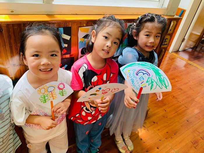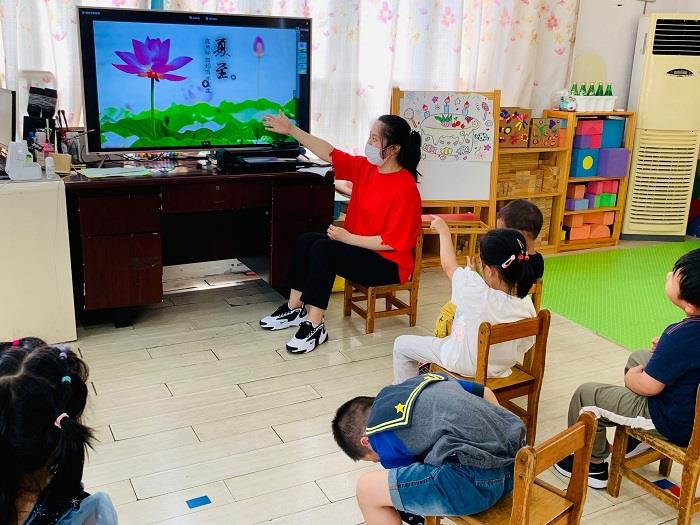 活动中老师运用生动形象的课件和视频动画,让幼儿了解到“什么是夏至”“夏至吃什么”“夏至人们做什么”等风俗习惯,孩子们进一步认识了我国优秀的传统文化,知道了作为小公民应当传承民族传统节日的义务,在了解传统文化的同时树立了民族意识。接着结合“夏至”的节气特征,在艺术领域活动中老师开展了“做一把扇子,送一抹清凉”活动,让孩子们亲手制作漂亮的扇子,在炎炎夏日中互送清凉。