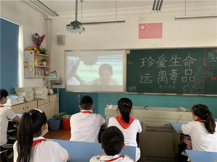 各班通过相关事例为同学们讲述了毒品的各种危害,还进行了毒品的知识普及教育。五年级队干部从毒品的来源、可能接触到的途径以及毒品吸食后的危害等各个方面对毒品做了介绍,并通过播放禁毒电影使伙伴们更加深刻地感受到毒品对人类的危害。六年级小干部组织了以"珍爱生命,远离毒品"为主题的知识抢答,从抢答正确率可以看出,同学们通过本次活动深刻地认识到了毒品的危害性,学会了如何拒绝毒品的诱惑,在一定程度上提高了他们的自我防护意识。