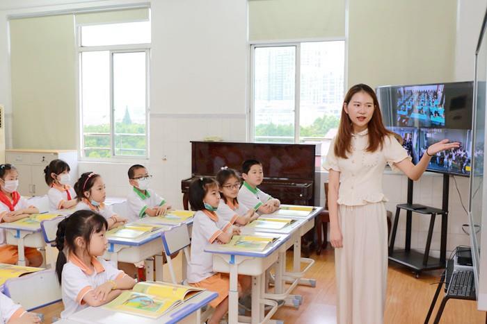 会议分三个议程进行。首先扬名中心小学孙丹艳老师为大家演绎了一堂别开生面的绘本课《我爸爸》。孙老师绘声绘色的课堂教学,通过“双师课堂”的技术设备传递到集团各成员校的听课教室,既展现了“深度学习•思维课堂”理念下的课堂本色,也体现了课堂教学与现代化技术的完美融合。