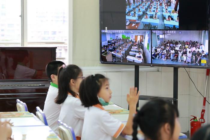 为更好开展集团创新项目,进一步推进区“深度学习•思维课堂”理念的落实, 6月22日,扬名教育集团推进课堂改革培训会议于无锡市扬名中心小学召开。本次培训活动,利用了双师课堂的设备,让扬名、滨河、夹小的师生在各自的学校同时上课和听讲座,享受到了教育信息化带来的便利。