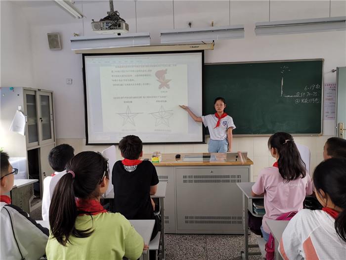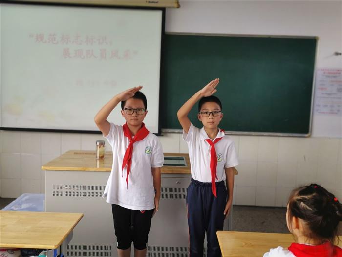 接着各中队通过讲解、演示、互动等活动形式,再次学习了佩戴红领巾的口诀、系红领巾的方法、队名、队旗、队礼及少先队标志。每位学生都参与到此次活动之中,不仅重温少先队礼仪,并且进一步规范了少先队礼仪,同时进一步激发了少先队员的仪式感和光荣感,提升了少先队员们的思想认识。