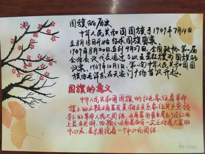 随后,团员们以各种方式表达对国旗的崇敬和热爱,有的登上网站,为国旗点赞;有的制作卡片、电子小报,有的线上观摩各种仪式上的升旗仪式,有的重温电影《我和我的祖国》相关片段……