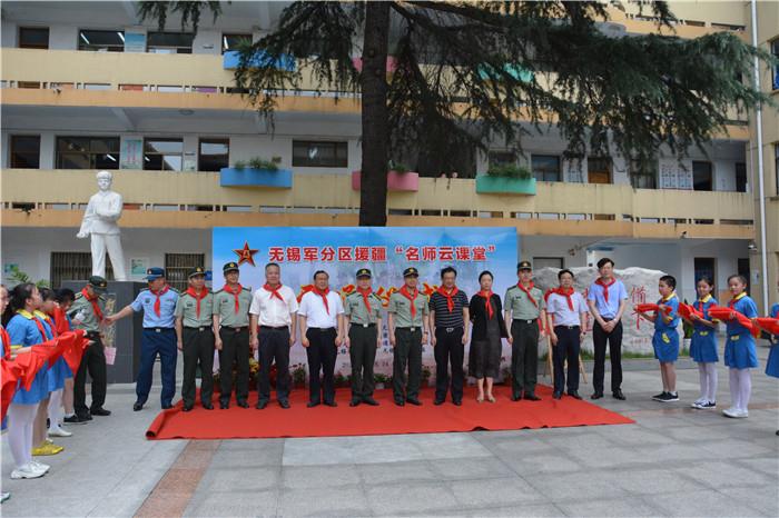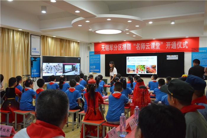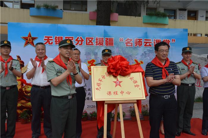 开通仪式由无锡军分区政治工作处主任江涛主持。在热烈的气氛中,少先队员向与会领导献上了鲜艳的红领巾。王作才司令员和许敏副局长共同为“名师云课堂”揭牌,全市唯一的“无锡军分区援疆‘名师云课堂’课程中心”正式落户学校。常新生政委宣布:无锡军分区援疆“名师云课堂”正式开通!