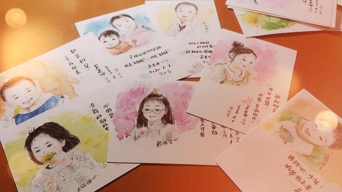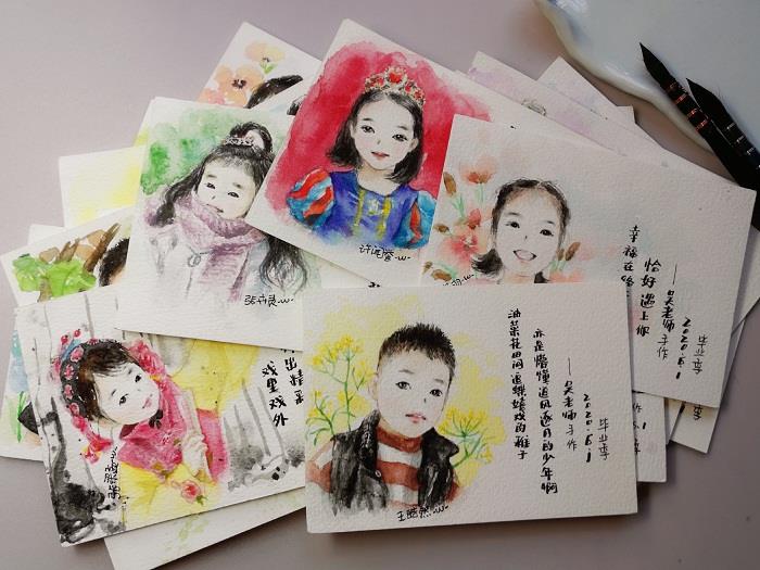 除了孩子们的画像,还有吴老师为每人量身定制的毕业寄语。这是从教20多年的吴老师第一次用这样的方式来绘制孩子的毕业礼物。今年因为疫情的关系无法组织多种形式的毕业活动,为了孩子们的毕业不留遗憾,吴老师就亲手为每一位孩子绘制了这样一份特殊的毕业礼。