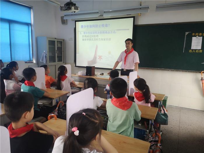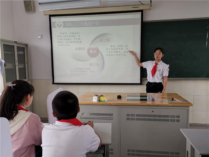 在少先队活动课上,辅导员和队员代表从毒品的来源、可能接触到的途径以及毒品吸食后的危害等各个方面对毒品做了介绍,并通过播放“珍爱生命,远离毒品”PPT,观看青少年预防毒品警示片《远离毒品》等,使队员们更加深刻地感受到毒品对人类的危害。队员们通过本次活动深刻的认识到了毒品的危害性,学会了如何拒绝毒品的诱惑,在一定程度上提高了他们的自我防护意识。
